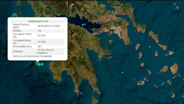 Σεισμός 5,8 Ρίχτερ ανοιχτά των Φιλιατρών σημειώθηκε το πρωί της Παρασκευής (29/3), στις 9:12, αναστατώνοντας τους κατοίκους της περιοχής.
