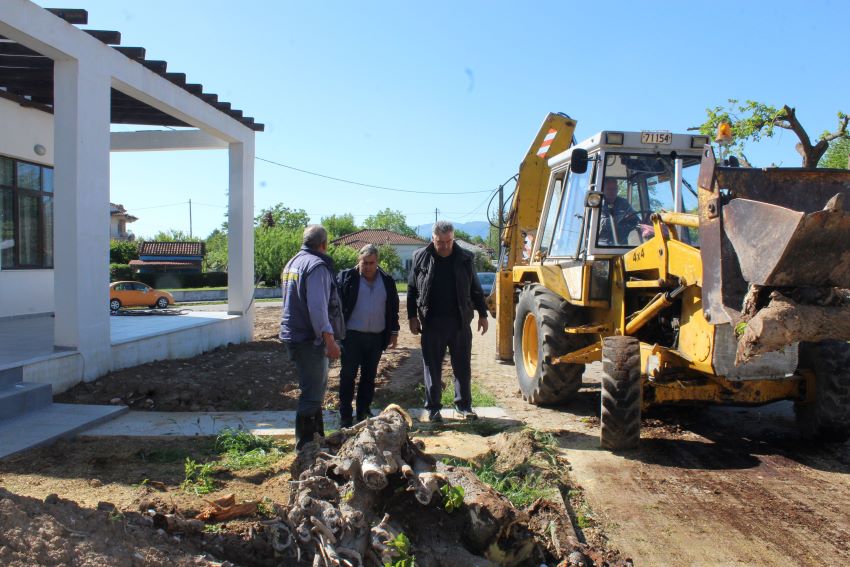 Τις τελευταίες εξωτερικές εργασίες διαμόρφωσης του περιβάλλοντα χώρου, στην αίθουσα συνάθροισης κοινού στην Πηγή, επιθεώρησε την Πέμπτη 27 Απριλίου ο Δήμαρχος Πύλης Κώστας Μαράβας.