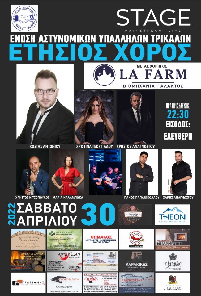 ΑρχικήΚοινωνικάΣτις 30/4 ο ετήσιος χορός της Ένωσης Αστυνομικών υπαλλήλων Τρικάλων....