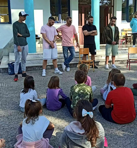 Οι αθλητές Νίκος Σκόνδρας, Γιάννης Σκόνδρας, Βάϊος Ντάσκας, Γιώργος Νικλητσιώτης και εκπρόσωποι της Διοίκησης, μίλησαν με τους νεαρούς μαθητές για τις αξίες του αθλητισμού, αλλά και τα μυστικά του ποδοσφαίρου και φυσικά, τους προσκάλεσαν να έρθουν στο γήπεδο και να παρακολουθήσουν από κοντά μια μονομαχία της ομάδας με το ξεκίνημα του πρωταθλήματος της Γ’ Εθνικής.d