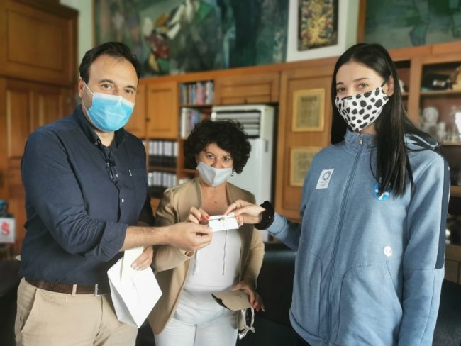 Ο κ. Παπαστεργίου και διά ζώσης τη συνεχάρη για την επιτυχία της να προκριθεί στους Αγώνες, υπενθυμίζοντας τη σημασία της συνεχούς προσπάθειας, της πίστης σε έναν σκοπό. Με ένα μικρό και συμβολικό δώρο, γεμάτο ευχές για την καλύτερη δυνατή προσπάθεια και αποτέλεσμα στην ιαπωνική πρωτεύουσα, ο Δήμος Τρικκαίων βρίσκεται στο πλευρό της πρωταθλήτριας και φοιτήτριας στη ΣΕΦΑΑ Τρικάλων.