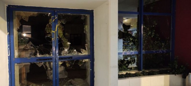 Το χτύπημα έγινε εξωτερικά με σπάσιμο πολλών τζαμιών και μπογιές που πετάχτηκαν στο εσωτερικό.