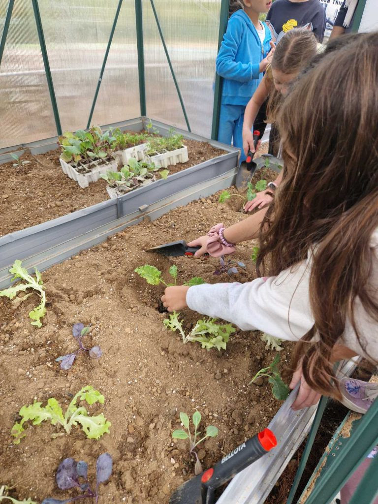 Οι μικροί μας κηπουροί, υπό την καθοδήγηση των εκπαιδευτικών, της Ένωσης Εργαζομένων Καταναλωτών Ελλάδας και με τη στήριξη του Συλλόγου Γονέων και Κηδεμόνων, συμμετέχουν σε βιωματικά εργαστήρια και καλλιεργούν λαχανικά σε προστατευμένο χώρο (θερμοκήπιο) και στην ύπαιθρο. Ο εξοπλισμός περιλαμβάνει σύγχρονα εργαλεία και τεχνολογίες, όπως μετεωρολογικό εξοπλισμό, πλήρως βελτιωμένο εδαφικό υπόστρωμα για υπερυψωμένα παρτέρια κηπευτικών και δίκτυο άρδευσης.