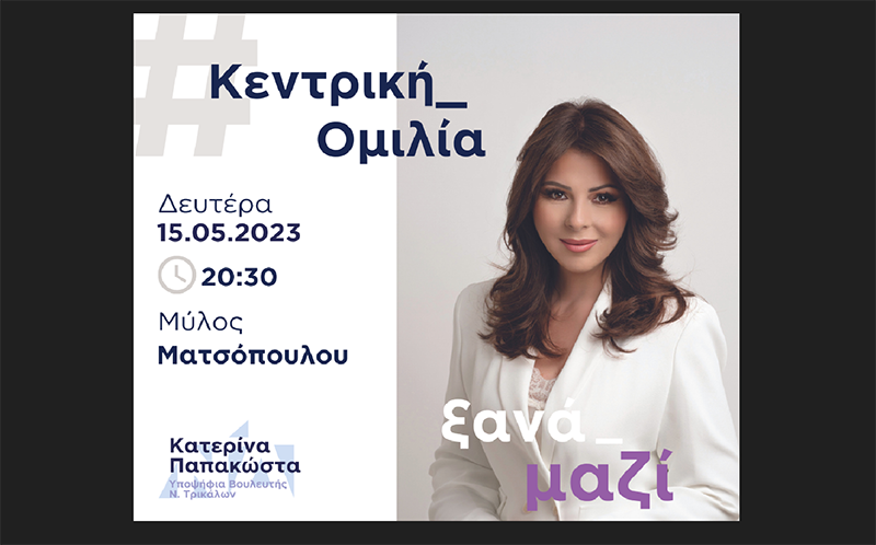 ΑρχικήΘεσσαλίαΤη Δευτέρα, 15 Μαΐου, η Κεντρική Προεκλογική Ομιλία, της Κατερίνας Παπακώστα