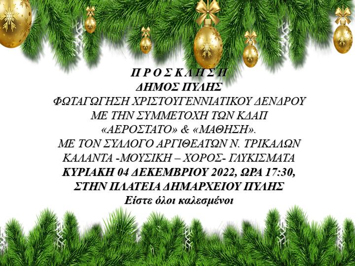 Σας προσκαλεί στην ΦΩΤΑΓΩΓΗΣΗ του ΧΡΙΣΤΟΥΓΕΝΝΙΑΤΙΚΟΥ ΕΛΑΤΟΥ.