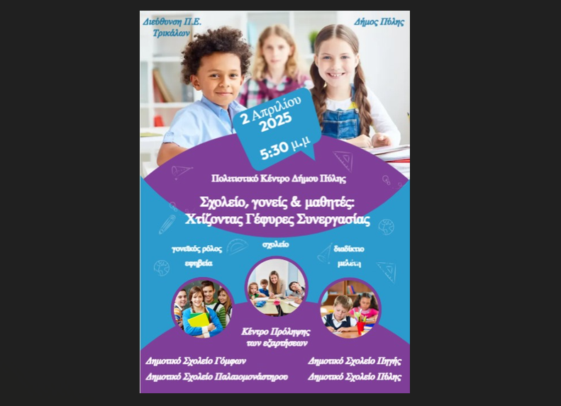 Την Τετάρτη 2/4 η εκδήλωση του Δημ. Σχολείου Πύλης, στο Πολιτιστικό Κέντρο