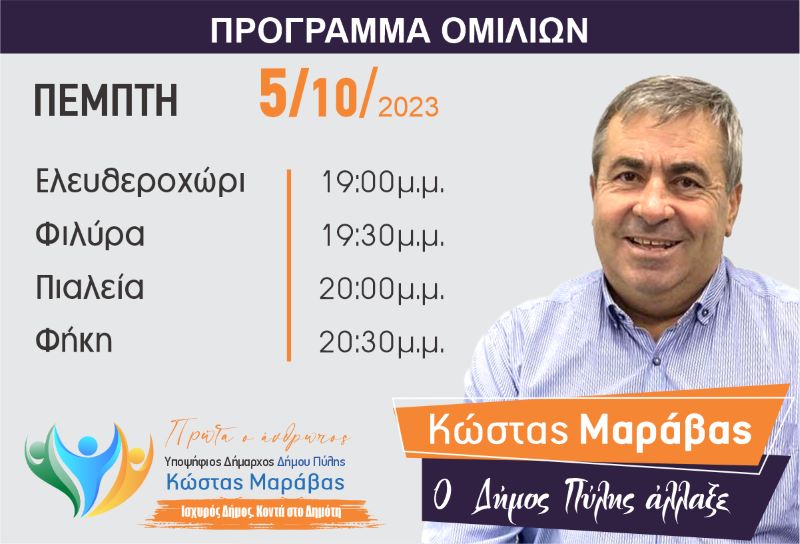 Το πρόγραμμα επισκέψεων του Κώστα Μαράβα, για την Πέμπτη 5/10