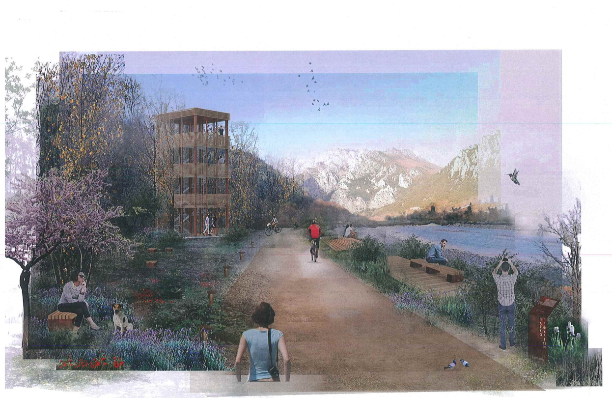 Στα δύο εσωτερικά ξέφωτα του πάρκου θα τοποθετηθούν δύο πανομοιότυποι πύργοι για την πανοραμική θέαση του εξαιρετικού τοπίου και την παρατήρηση της ορνιθοπανίδας. Οι πύργοι θα είναι πρισματικές κατασκευές συνολικού ύψους 11.75μ, σύνθετης κατασκευαστικής ενότητας, από μέταλλο και ξύλο.