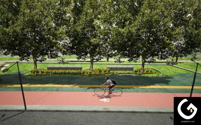 - Σε όλα τα σημεία της διαδρομής θα μετατοπιστούν στύλοι δικτύων κοινής ωφελείας για ανεμπόδιστη κίνηση πεζού και ποδηλάτη.