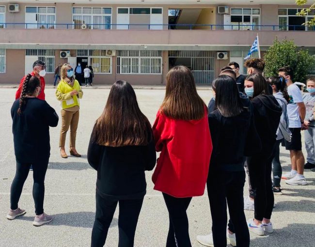 Η κ. Μακρή συνομίλησε με διευθυντές Λυκείων, καθηγήτριες και καθηγητές, μαθήτριες και μαθητές, γονείς και πολίτες, που ενδιαφέρθηκαν για το άνοιγμα των σχολείων αυτήν την πρώτη ημέρα επανεκκίνησης της διά ζώσης διδασκαλίας.